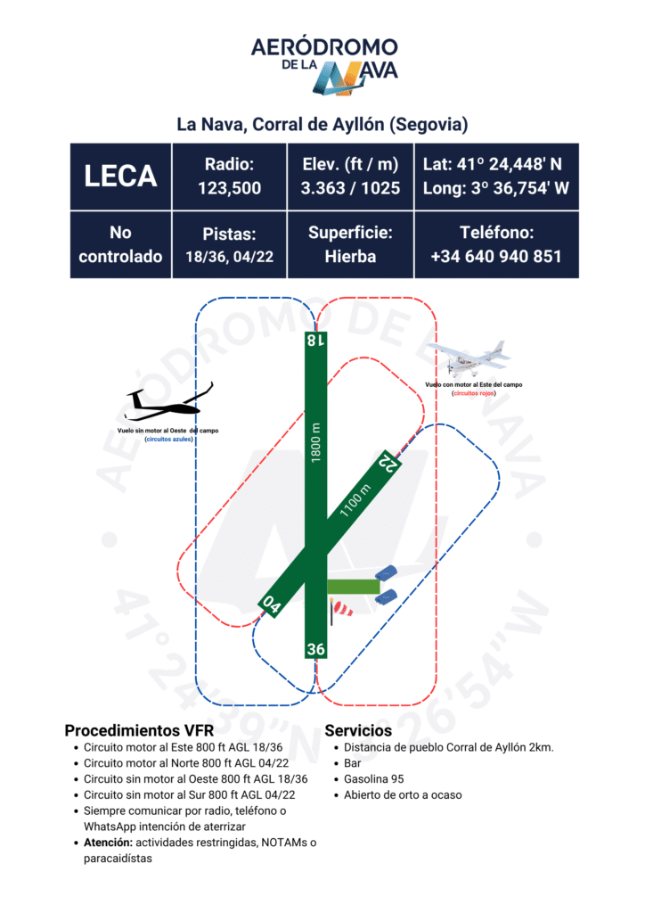 Cualquier aeronave que no esté basada en el aeródromo deberá contactar via email, telefónica o WhatsApp, recibir autorización para operar con antelación y abonar tasas de aterrizaje.